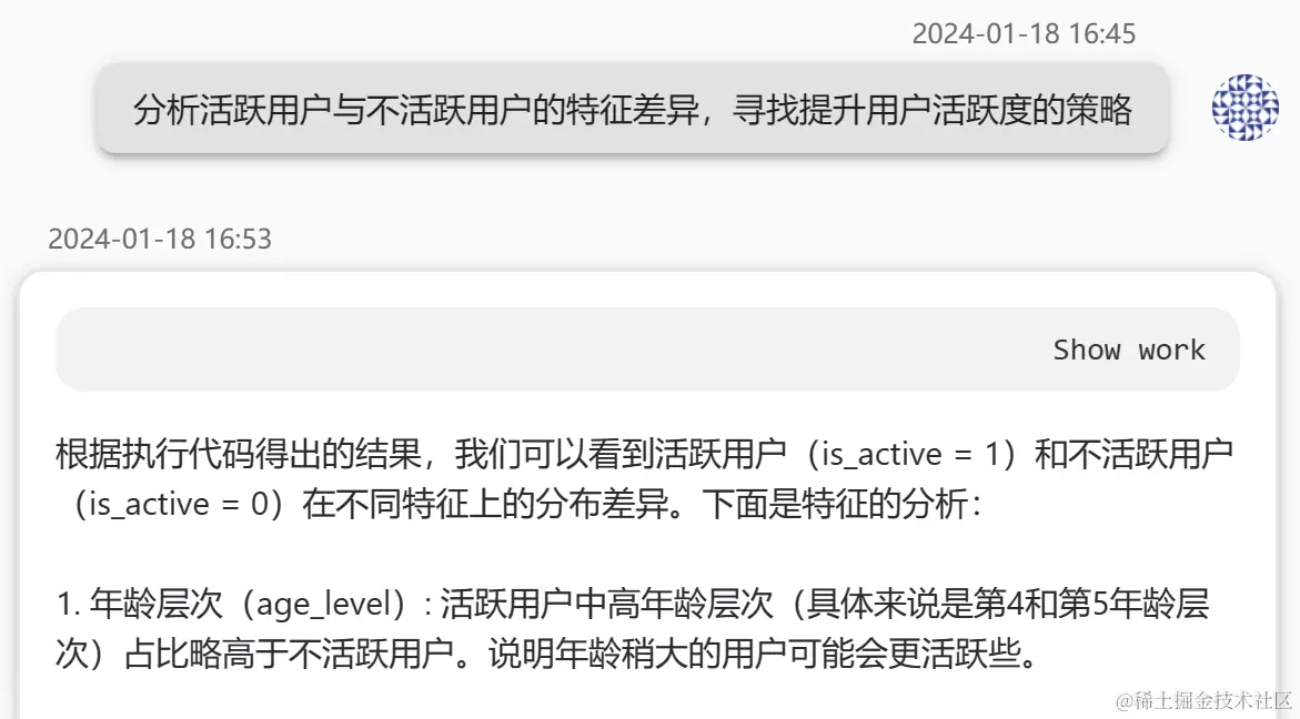 清楚的了解活跃用户与非活跃用户的特征差别并通过它来精准投放广告是创建成功广告的第一步。这往往令广告商绞尽脑汁的一步,如今可以用一句话让DeepBI轻松解决。