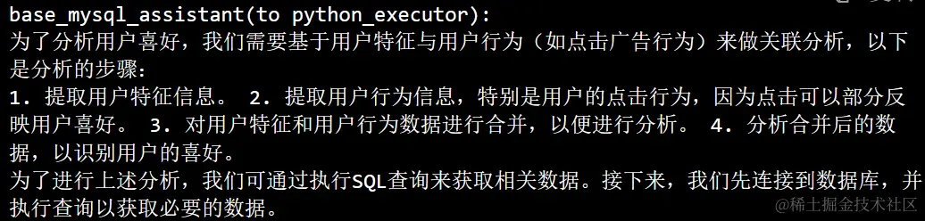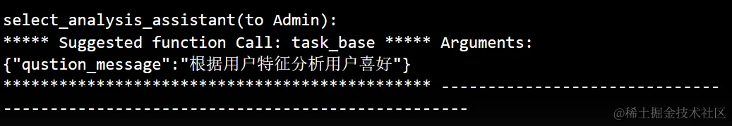 首先在接收到 “根据用户特征分析用户喜好” 这个问题后,会由select_analysis_assistant这个函数来对问题进行理解。
