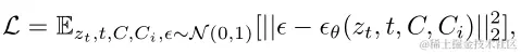 Ci是IdentityNet特有的图像条件,ϵθ是扩散模型的去噪函数,zt是噪声潜在表示,C是文本提示的嵌入。