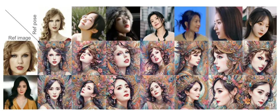 - 它通过设计一个新颖的IdentityNet,通过强语义和弱空间条件,将面部和关键点图像与文本提示结合起来,引导图像生成过程。