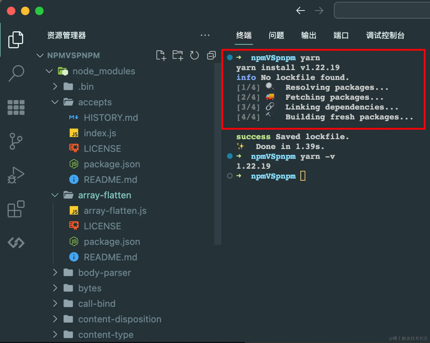 - 同上,将 node_modules 删除,使用 yarn 安装 express