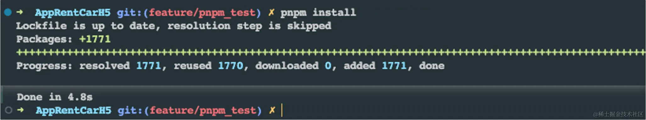 - 把 node_modules 删除之后,再次用 pnpm 安装, 【只耗时 4.8s】!!
