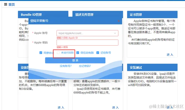 3.使用刚刚注册的苹果账号登录,选择未支付688(正式的开发者账号每年需要支付688美元)。