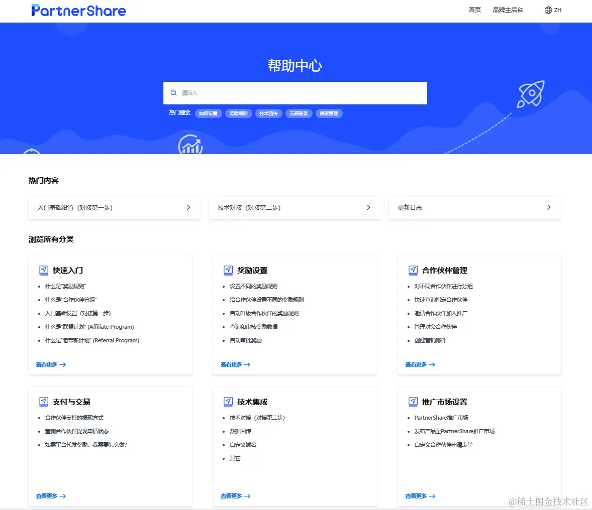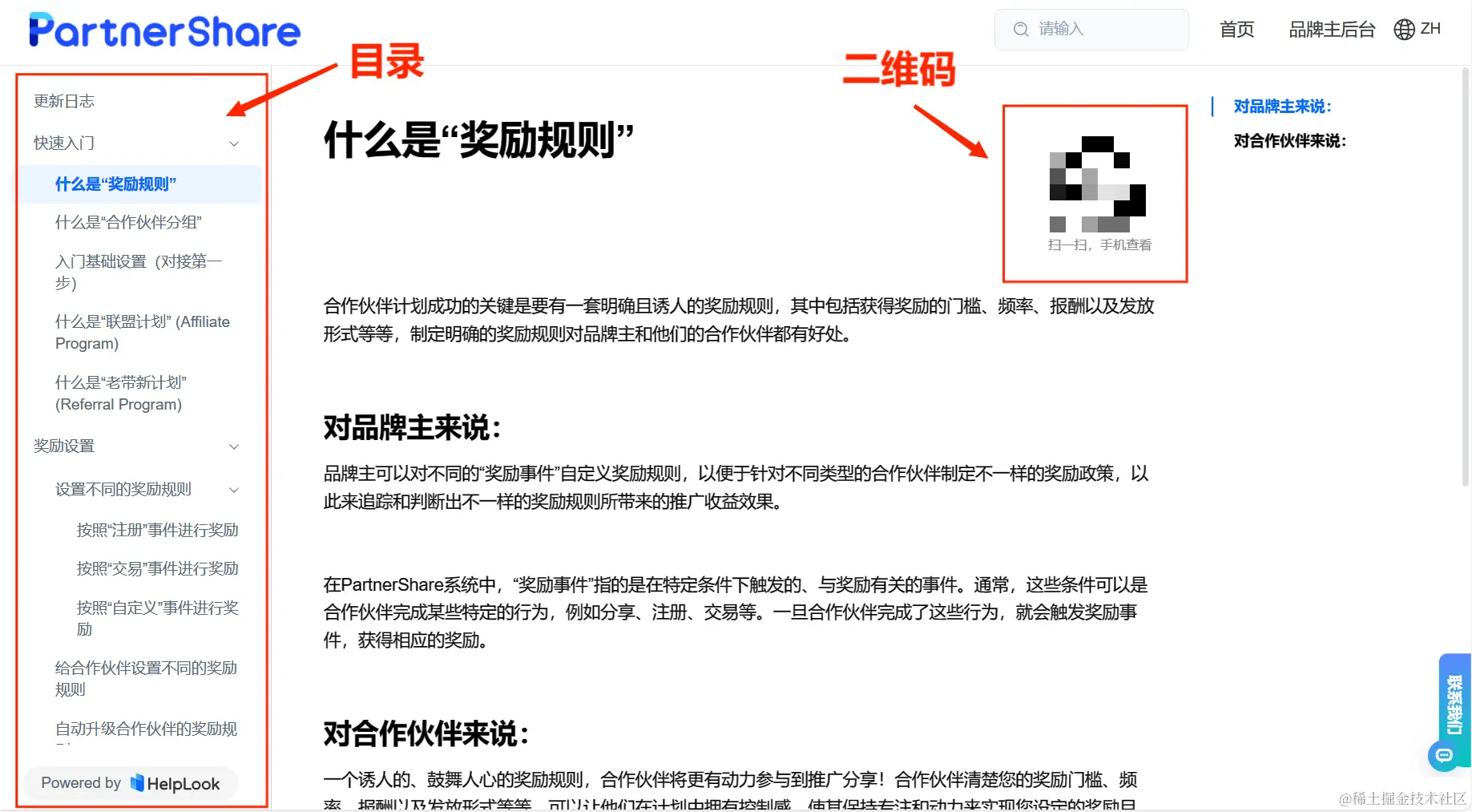 如下图,PartnerShare这个软件产品就是通过**HelpLook(产品说明书创建工具)**创建了一个在线的软件产品说明书。