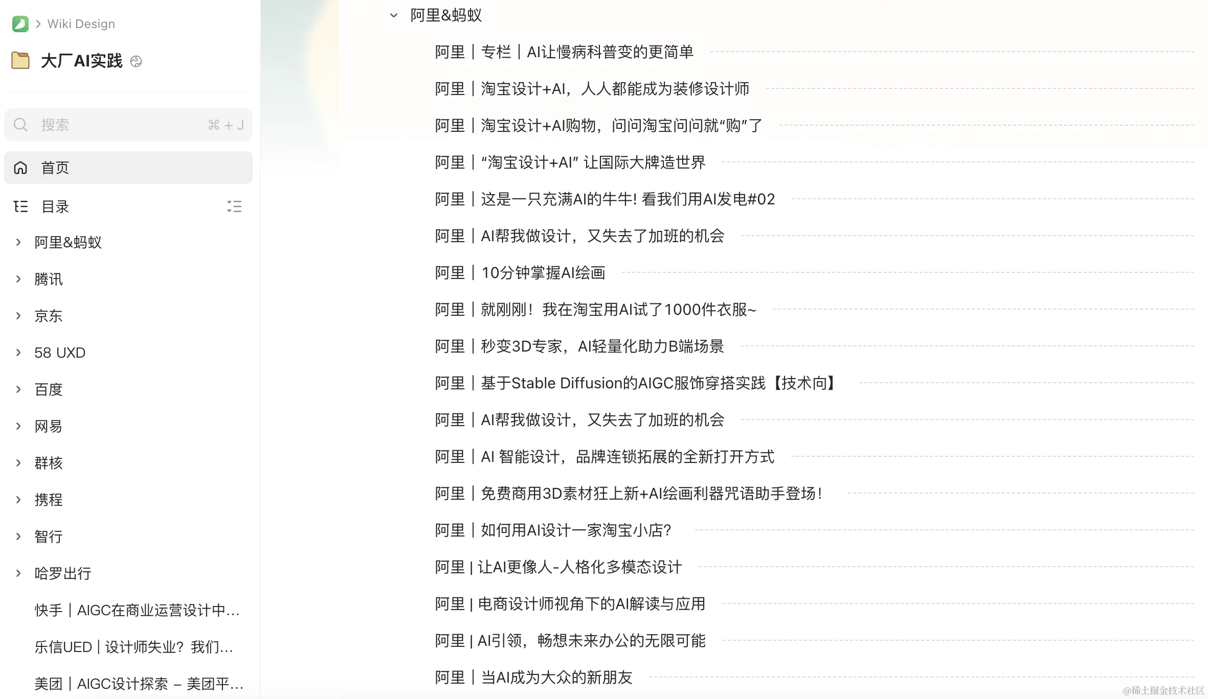 大厂AI 技术实践案例集合 gggguo 2024-01-29 211 阅读1分钟 大厂AI实践是一份网友整理的一线大厂AI 技术实践案例集合,上面收录了阿里蚂蚁、腾讯、京东、百度、网易、快手、美团等等一线大厂的一些AI技术应用落地案例,文档还是比较丰富和详细的,对于AI领域感兴趣的同学开业学习相关的AI应用案例。 地址:note.youdao.com/s/EHgfaArq