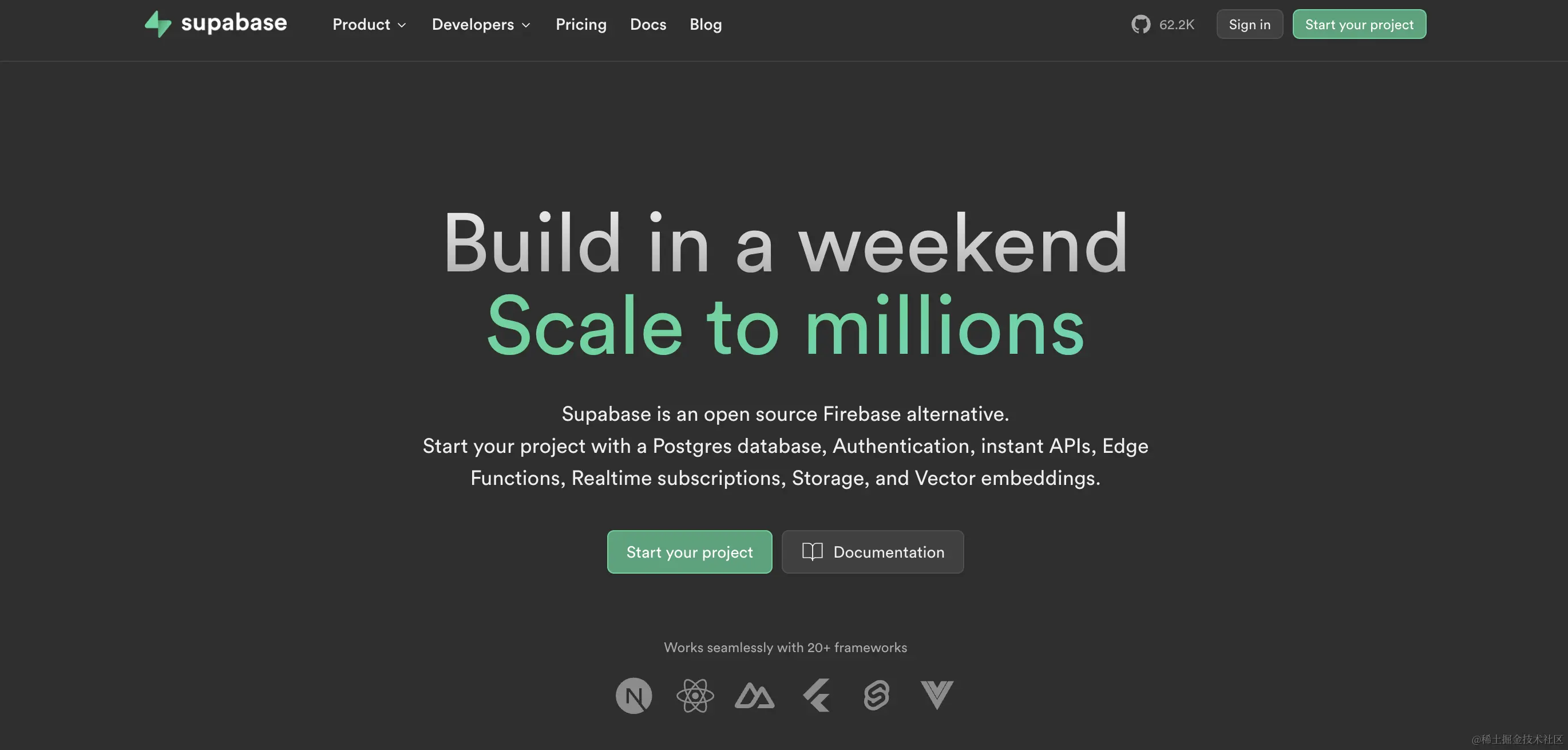 Supabase是一个开源的后端即服务(Backend-as-a-Service,BaaS)平台,它提供了一整套工具和服务,帮助开发者构建应用程序的后端,包括数据库、身份认证、实时通信和API端点等。提供了用户身份认证功能,允许您轻松管理用户帐户、注册和登录,以及实现密码重置和社交登录。免费额度提供50,000月活。