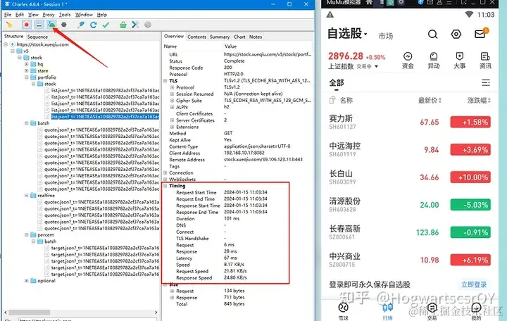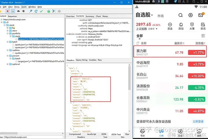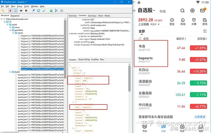 - 把列表中第二个股票的代码改为 hogwarts。