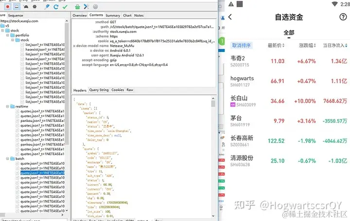 - 抓取雪球 app 自选–行情–A 股–涨幅榜股票列表的接口数据