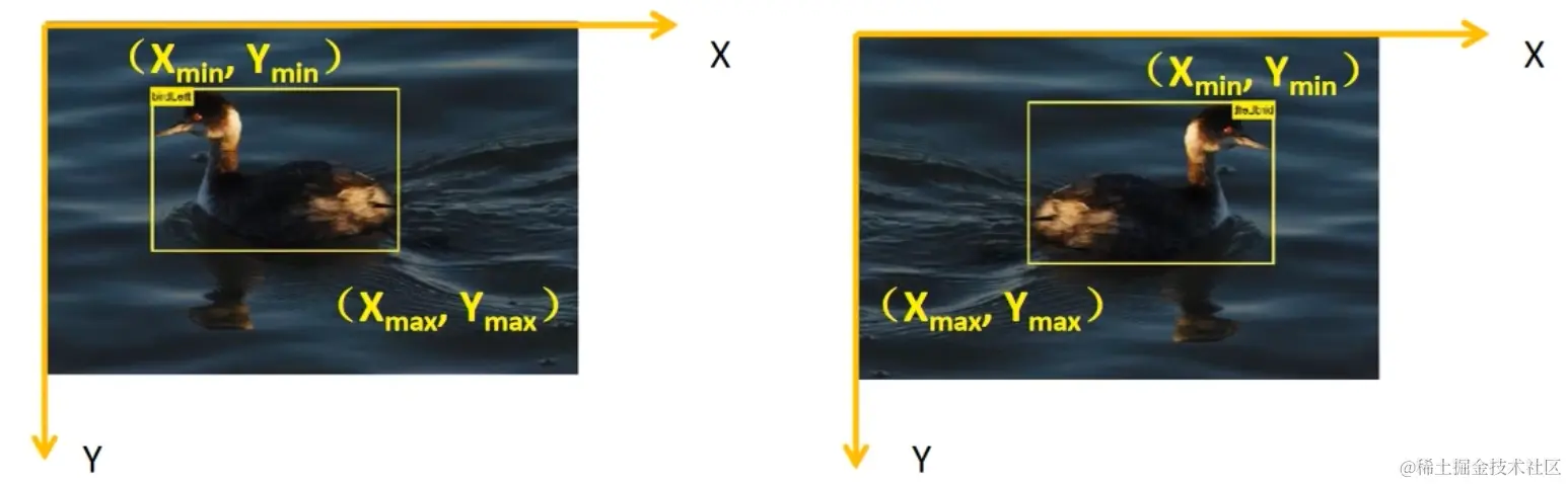 注意:在进行数据预处理的时候,与进行图像分类数据预处理操作有些不同,如进行图像的翻转时,bbox的坐标信息也应该随之进行改变。