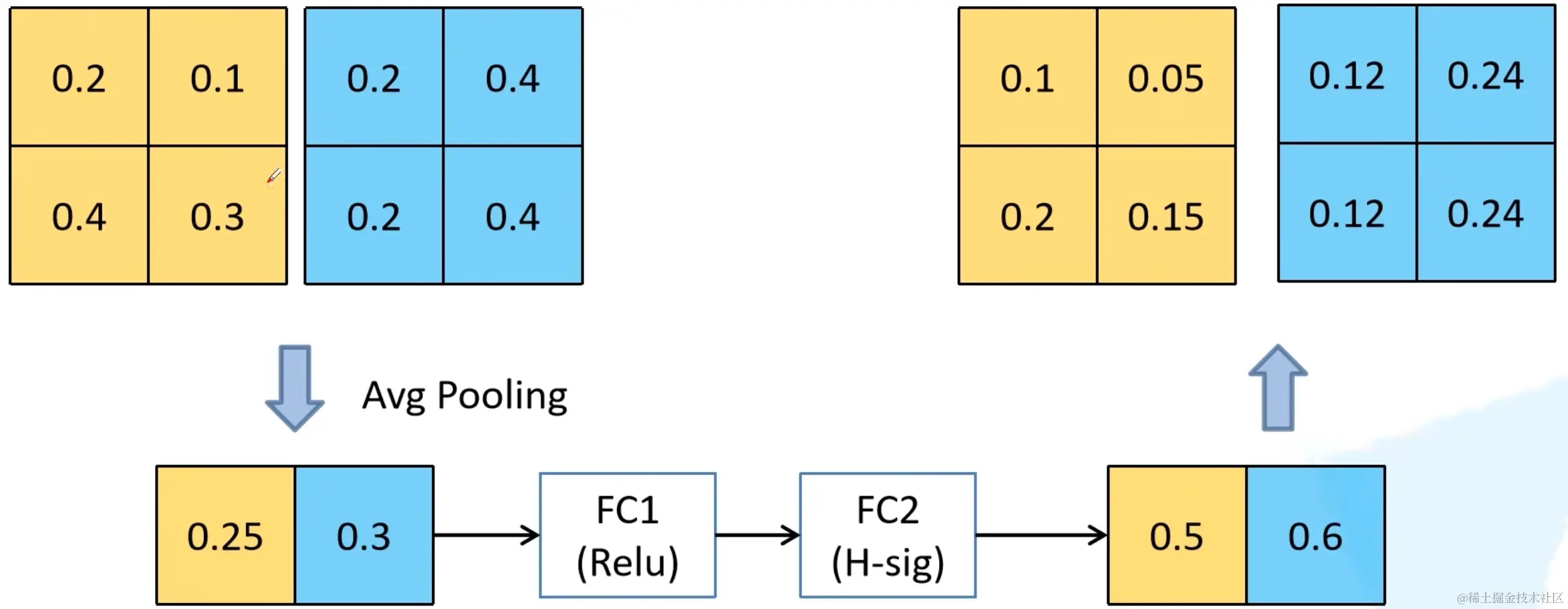 在很多时候,我们会选择使用h-sigmoid激活函数来替换sigmoid激活函数。使用h-swish激活函数来替代h-swish激活函数。
