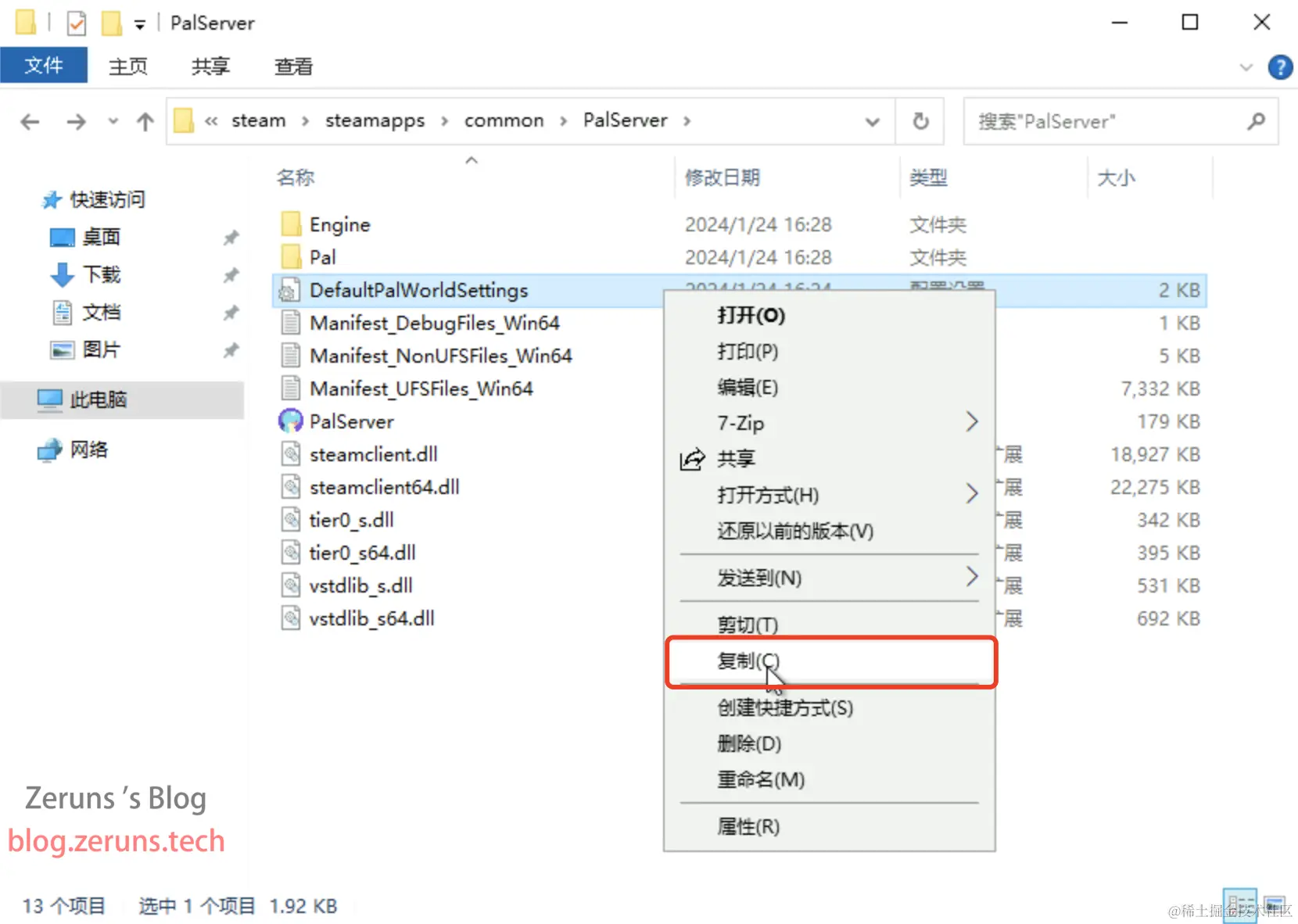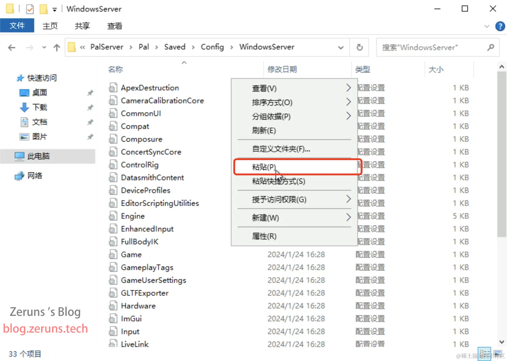 粘贴完成之后,删除原有的PalWorldSettings.ini文件,并将刚刚复制的文件名修改为PalWorldSettings.ini。