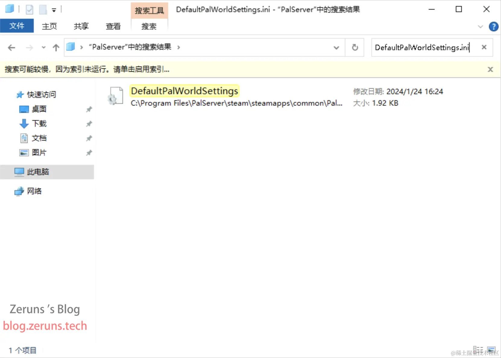 如您的幻兽帕鲁部署路径不为C:\Program Files\PalServer,推荐您直接使用文件名DefaultPalWorldSettings.ini,在Windows的文件夹内进行搜索。