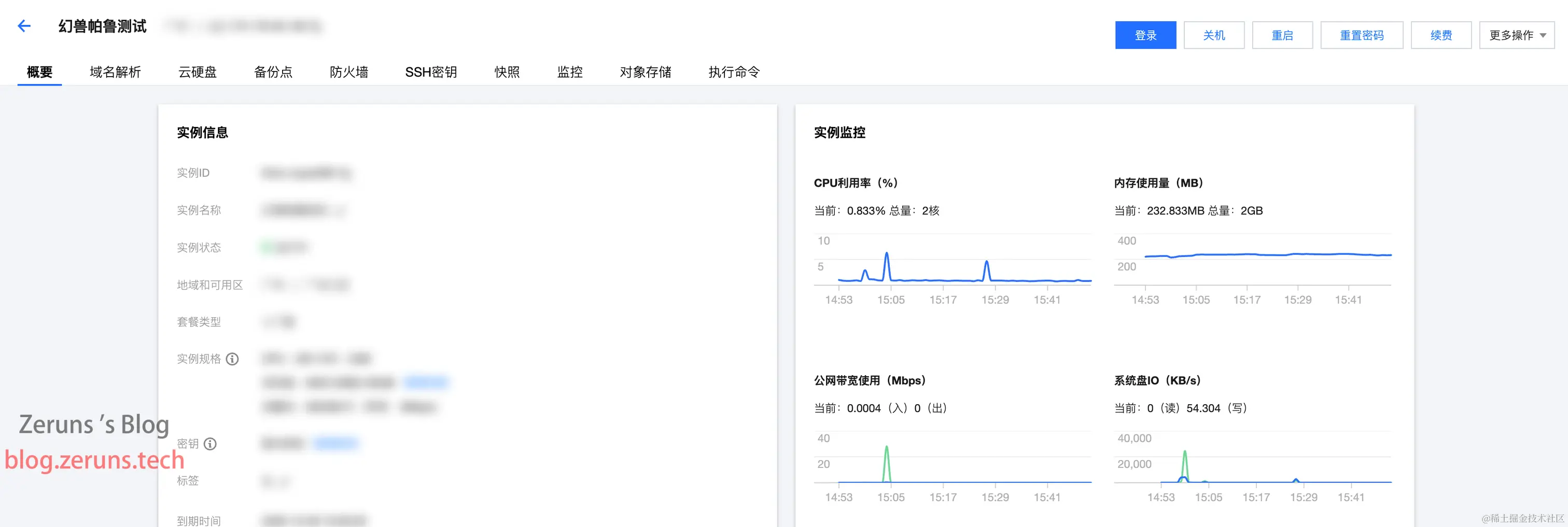 | 如何查看服务器内存监控? | 登录轻量应用服务器控制台,选中您部署了幻兽帕鲁的服务器,点击进入服务器详情页,即可在“实例监控”卡片中看到当前服务器内存的使用情况。 |