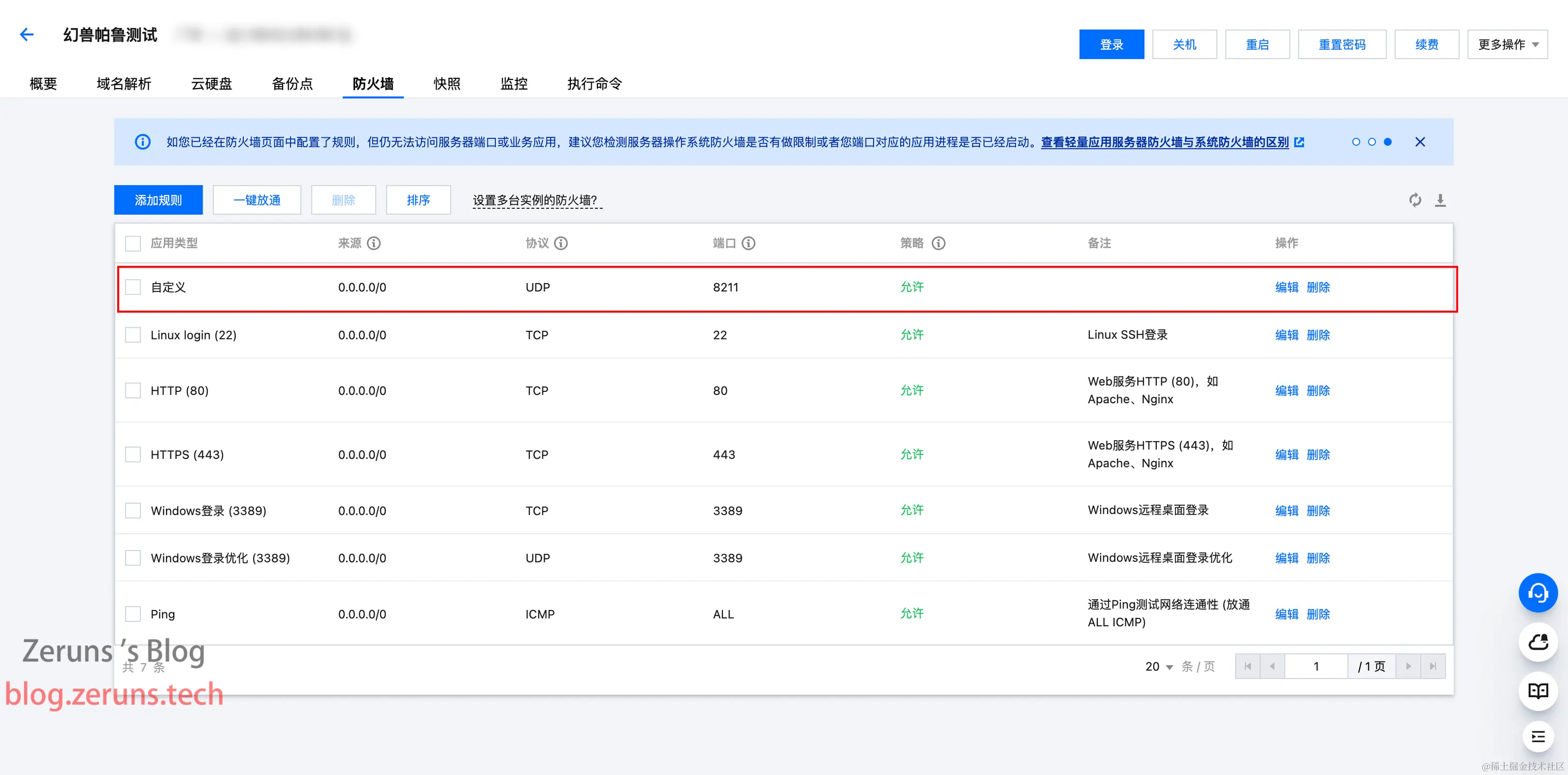 幻兽帕鲁默认使用8211端口进行通信,在登录之前您需要首先放通实例防火墙8211端口。