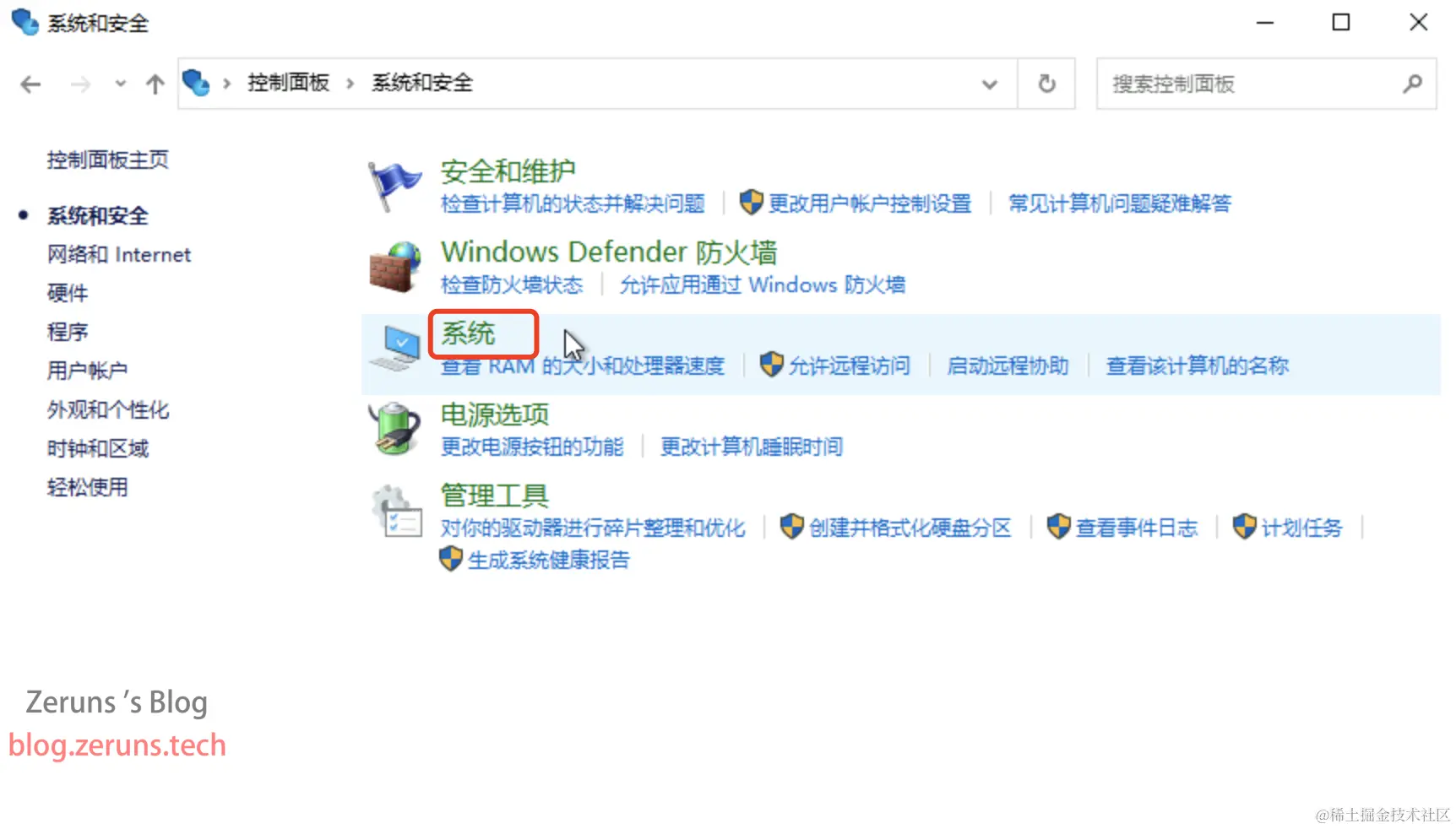 2、在控制面板中,选择"系统和安全",然后选择"系统"。