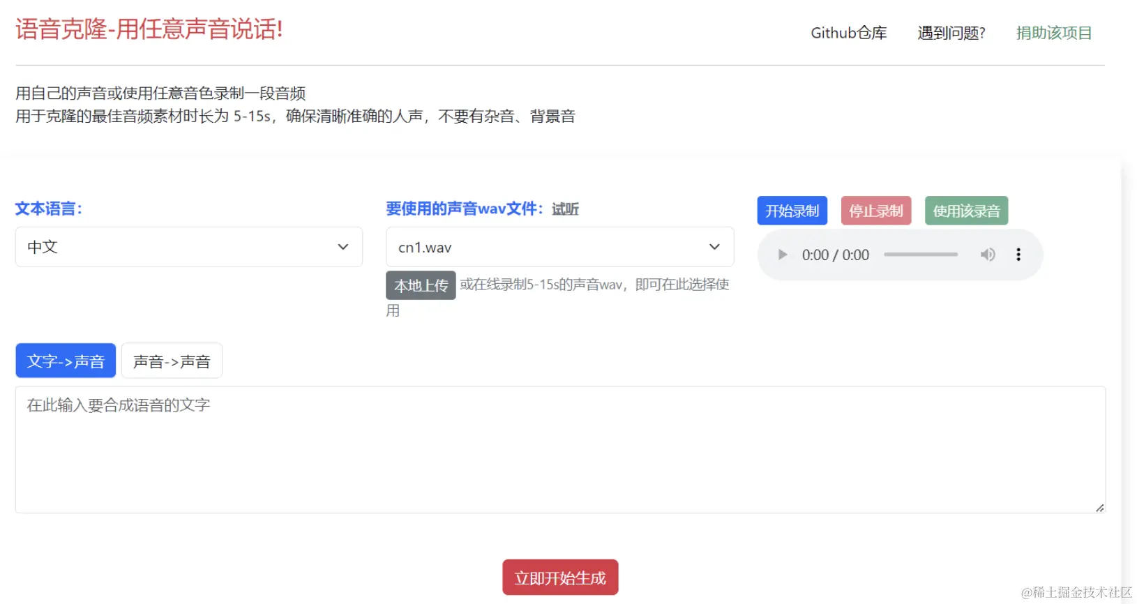 一个带web界面的声音克隆工具,使用你的音色或任意声音来录制音频。