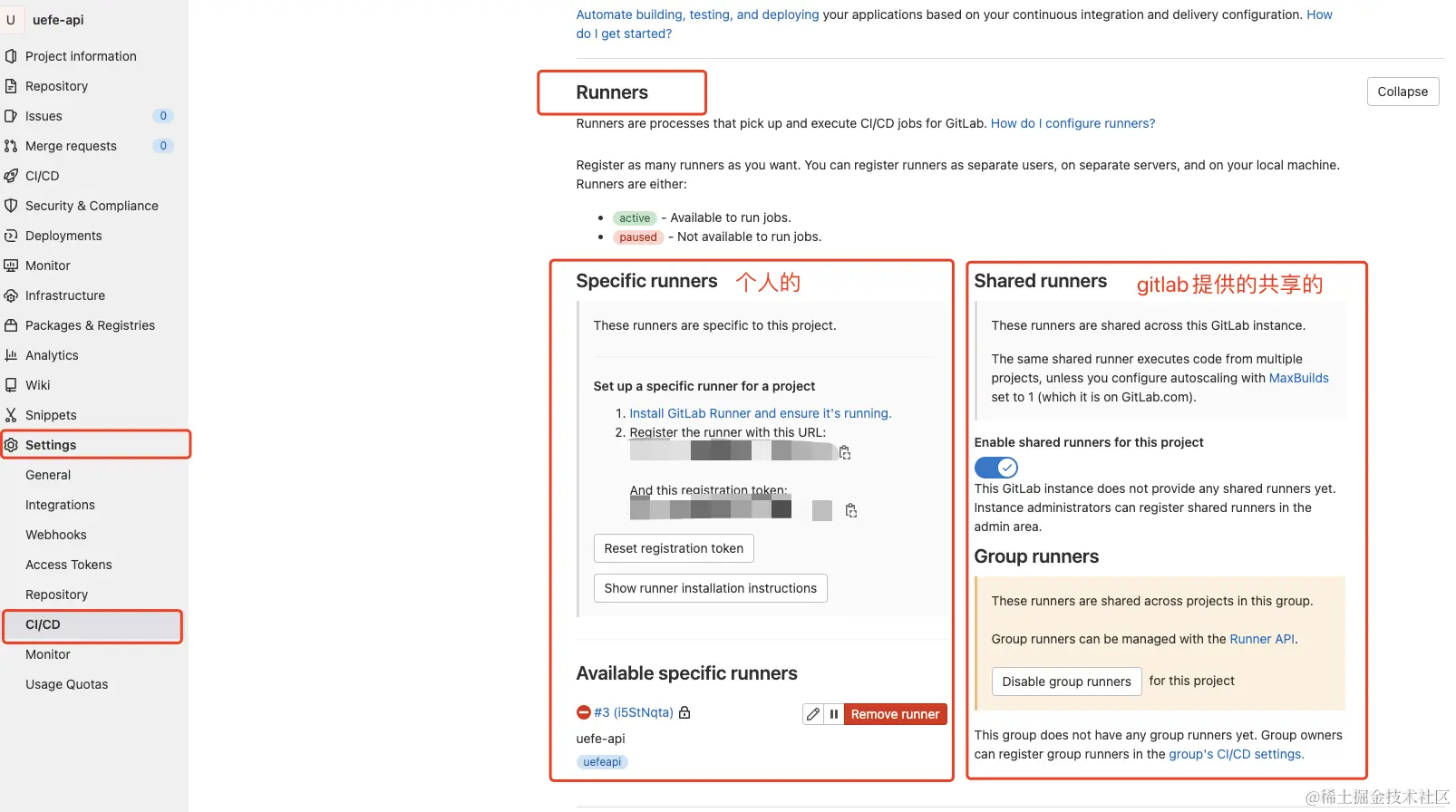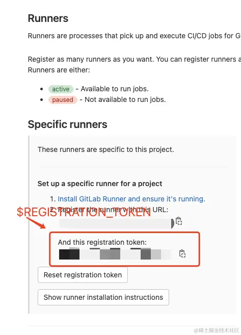- $REGISTRATION_TOKEN:替换成gitlab给我们的那个token,看下边这张图片