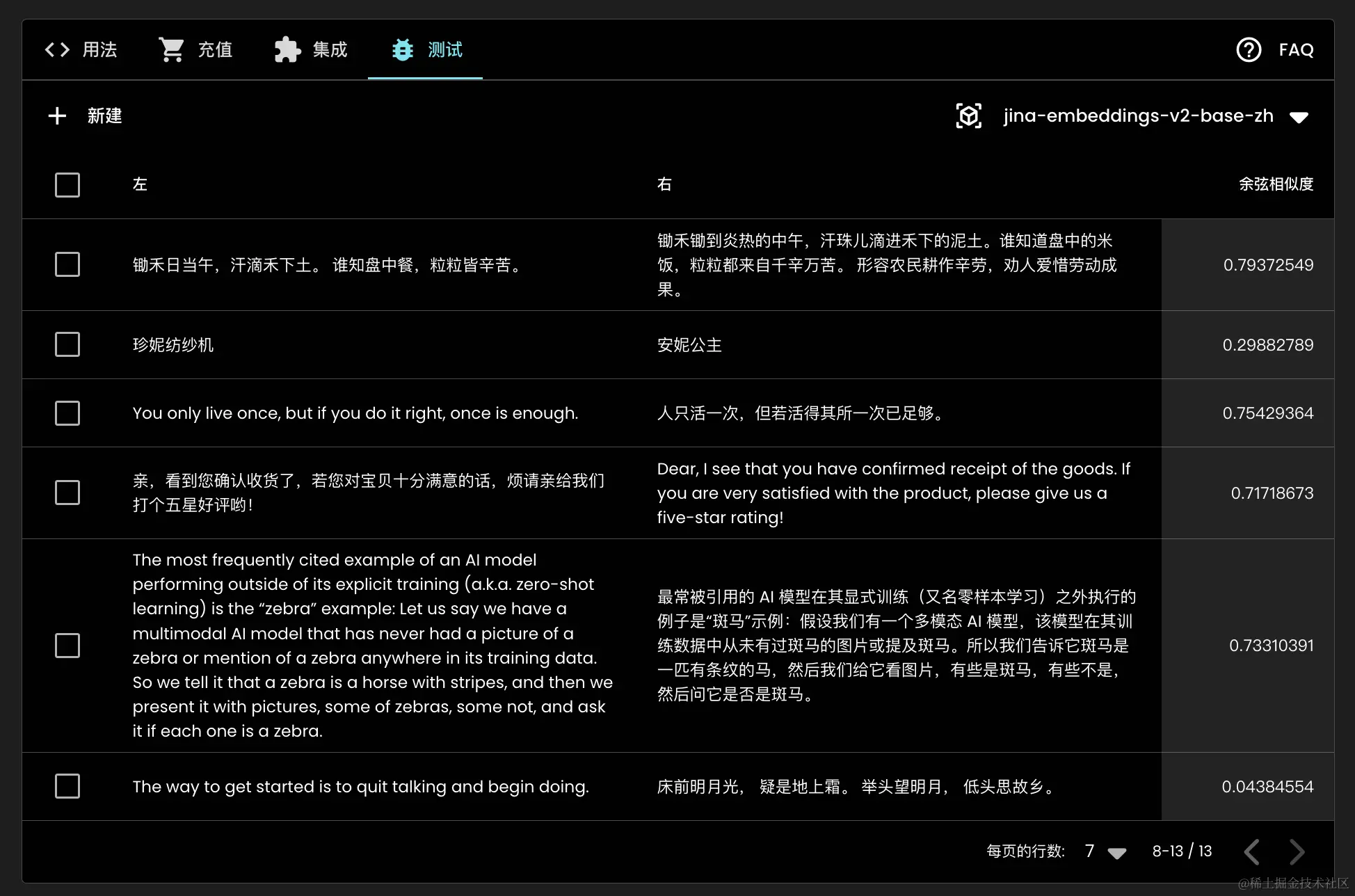 通过我们的官网 jina.ai/embeddings,您还可以体验文本相似度测试。