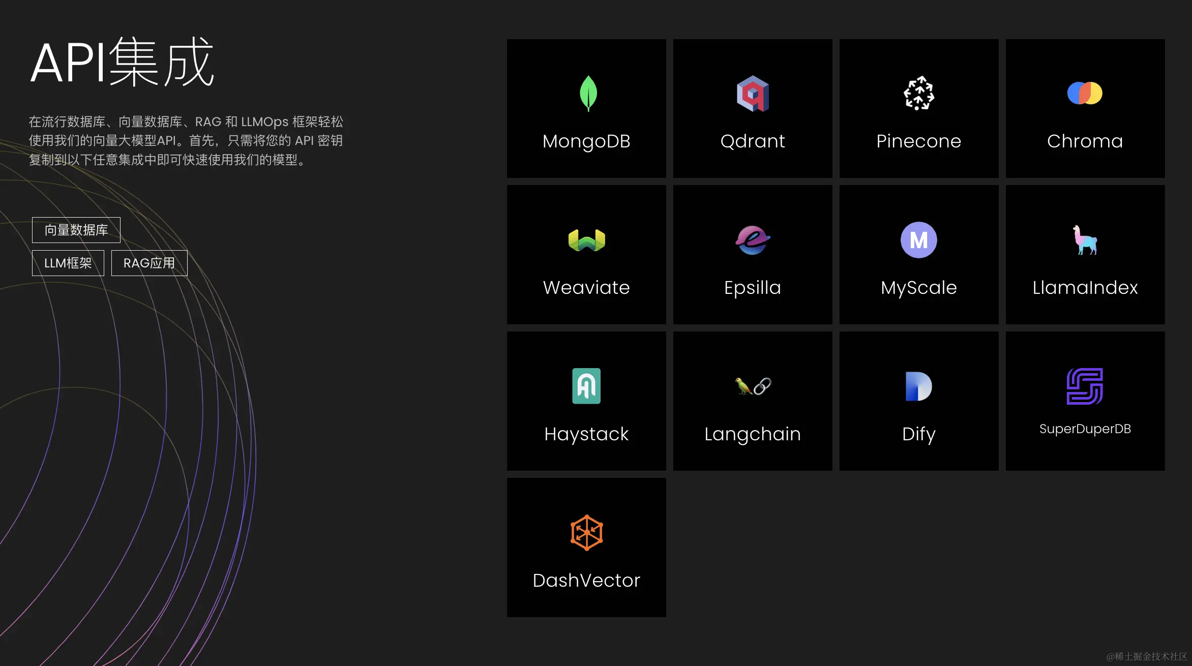 此外,Jina Embeddings 已经与十多个向量数据库和 RAG 系统,因此您可以根据自己的需求进行选择。