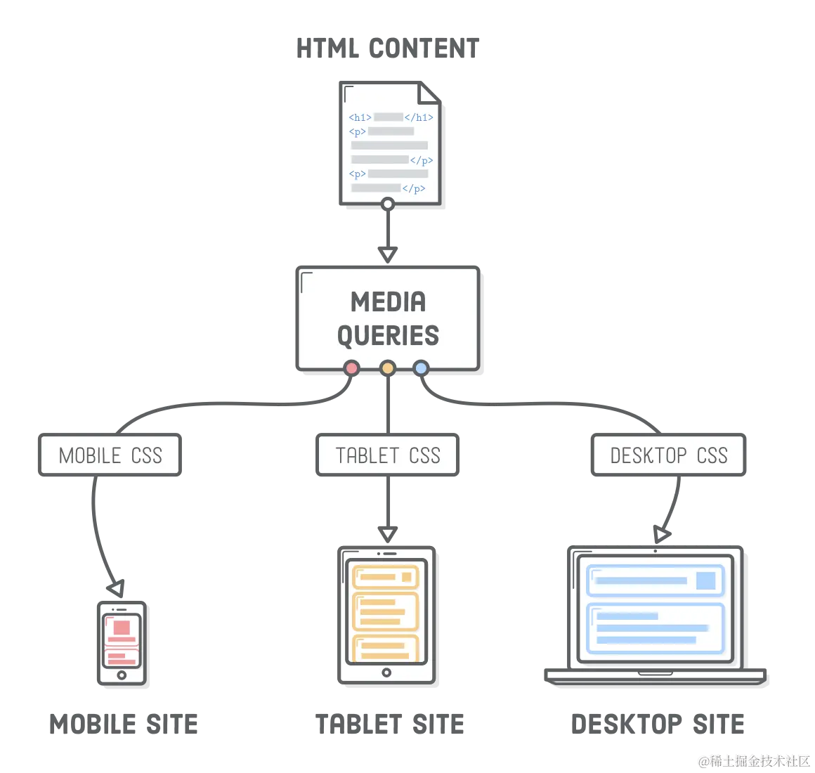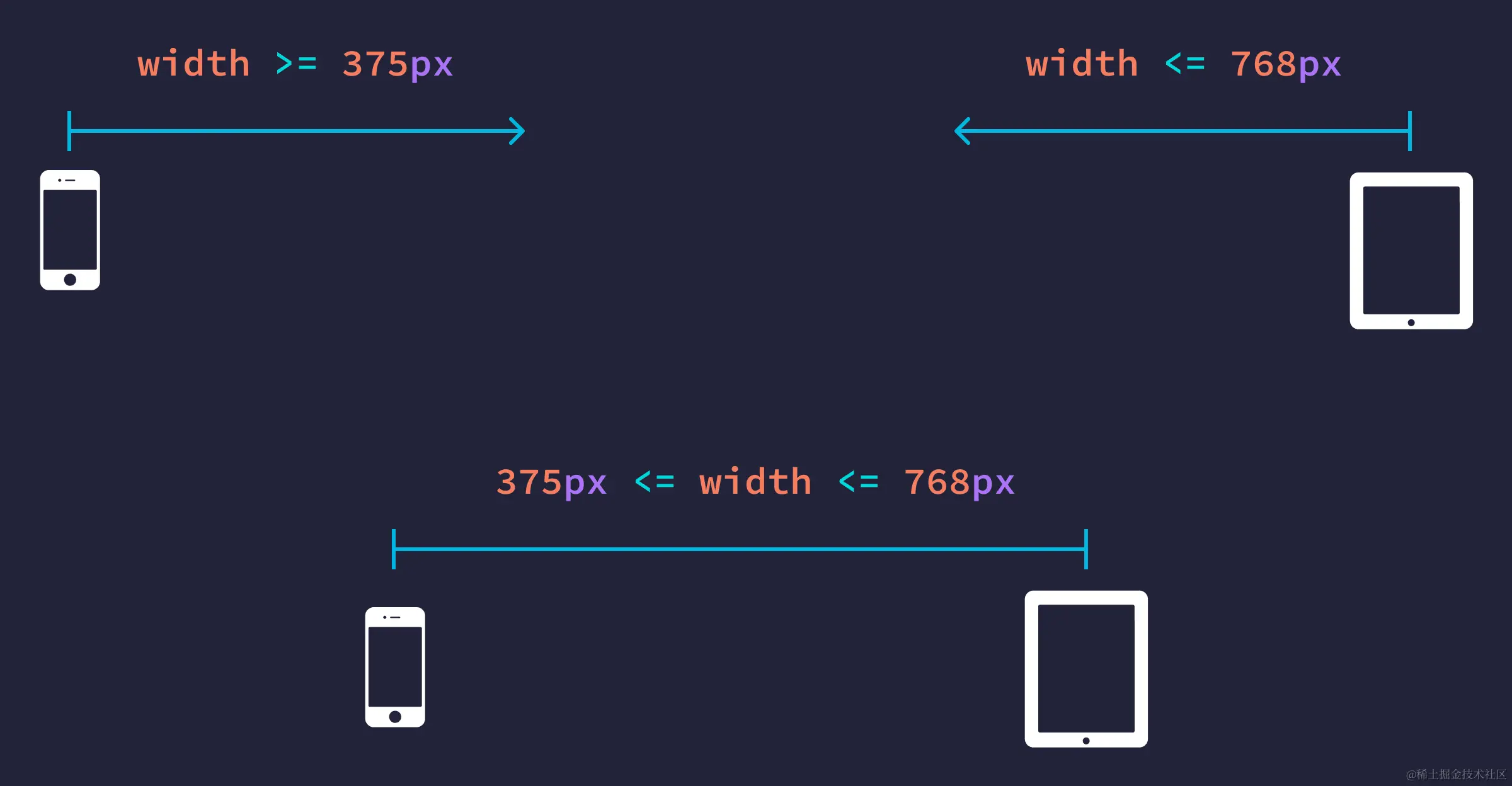 稍后会对 @media 展开介绍,如果你迫不急待,可以先移步阅读《CSS 媒体查询新特性:@media》!