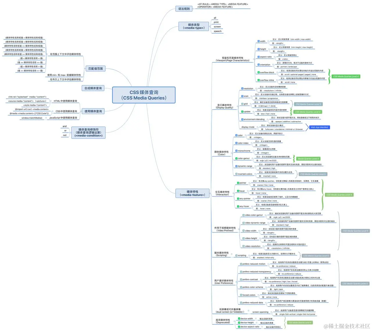 其中@media 和@supports两个规则是我们常见的规则,@container 是近两年 CSS 新增的特性,而@viewport并不常见,它们都算得上是 条件 CSS 规则。