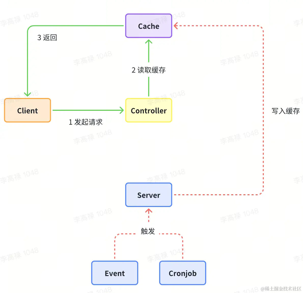 | 说明 | 优先返回缓存数据,如果缓存已过期则请求Server获取数据,并写入缓存。 | 通过与server对比缓存的hash或缓存的生成时间,确定是否需要更新。 | 在影响缓存的数据变化之后,重新计算缓存结果并写入缓存。 | 在请求时优先返回缓存,同时在后台触发一个请求更新缓存。 |