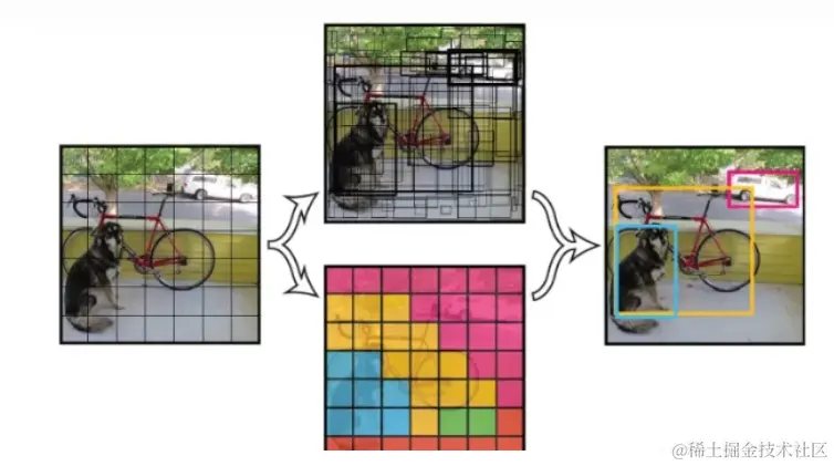 Yolo算法采用一个单独的CNN模型实现end-to-end的目标检测,核心思想就是利用整张图作为网络的输入,直接在输出层回归 bounding box(边界框) 的位置及其所属的类别。
