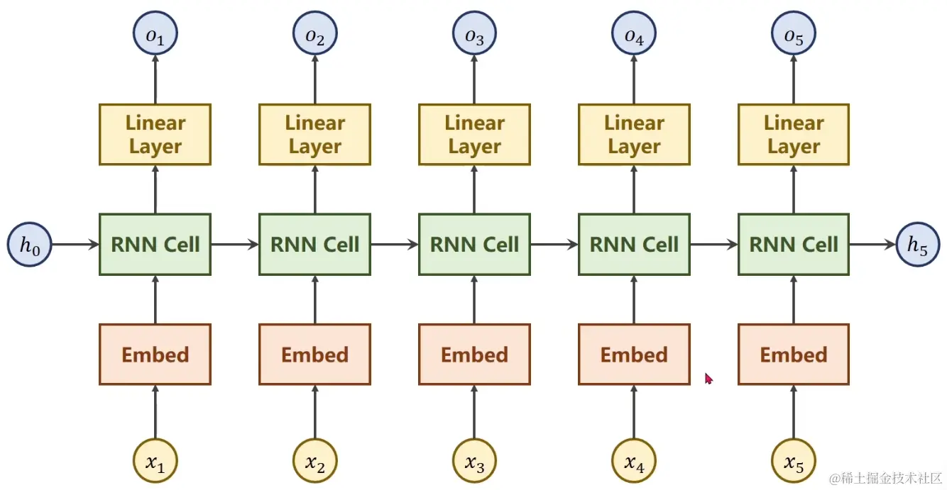 在RNN Cell之上我们又连了一层线性层,因为隐层输出必须和分类的数量一致,但是有时候不一致,就再接一个线性层解决该问题。