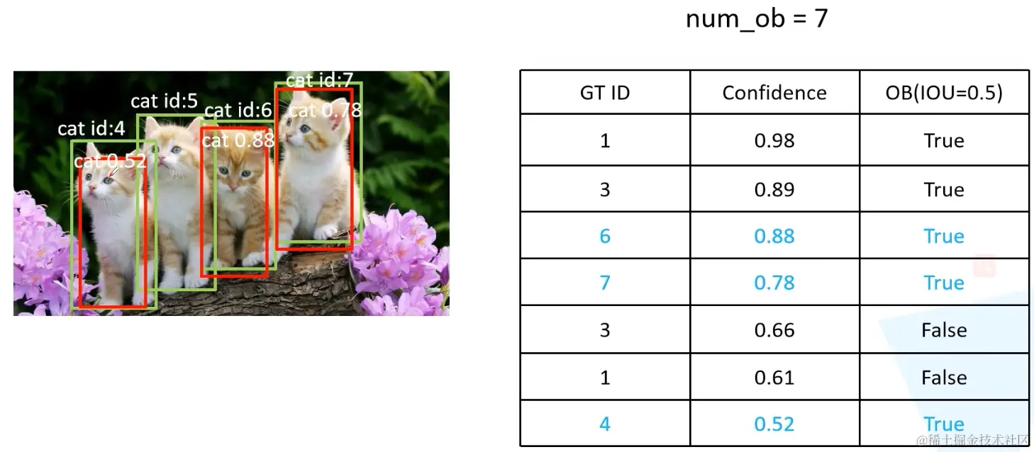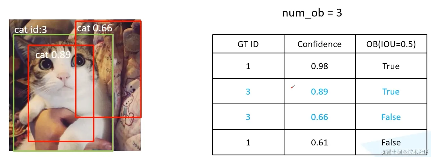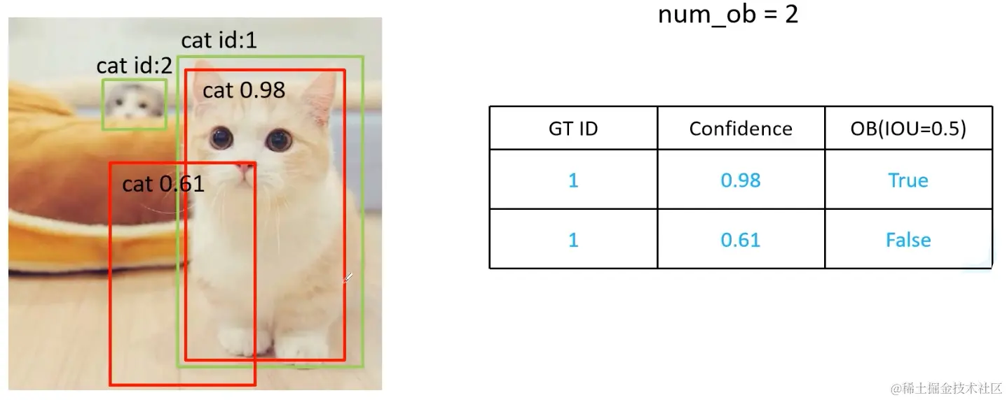 这里求的的AP为对应猫这个类别的AP值。使用同样的方法求出其他类别的AP值,最后求出所有类别AP的均值,就得到了mAP。