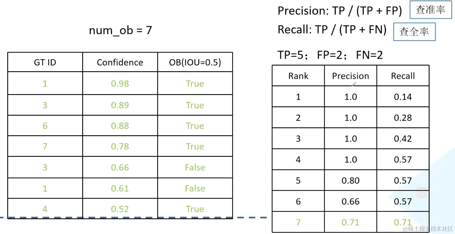 TP(True Positive):IoU>0.5的检测框数量(同一Ground Truth只计算一次)