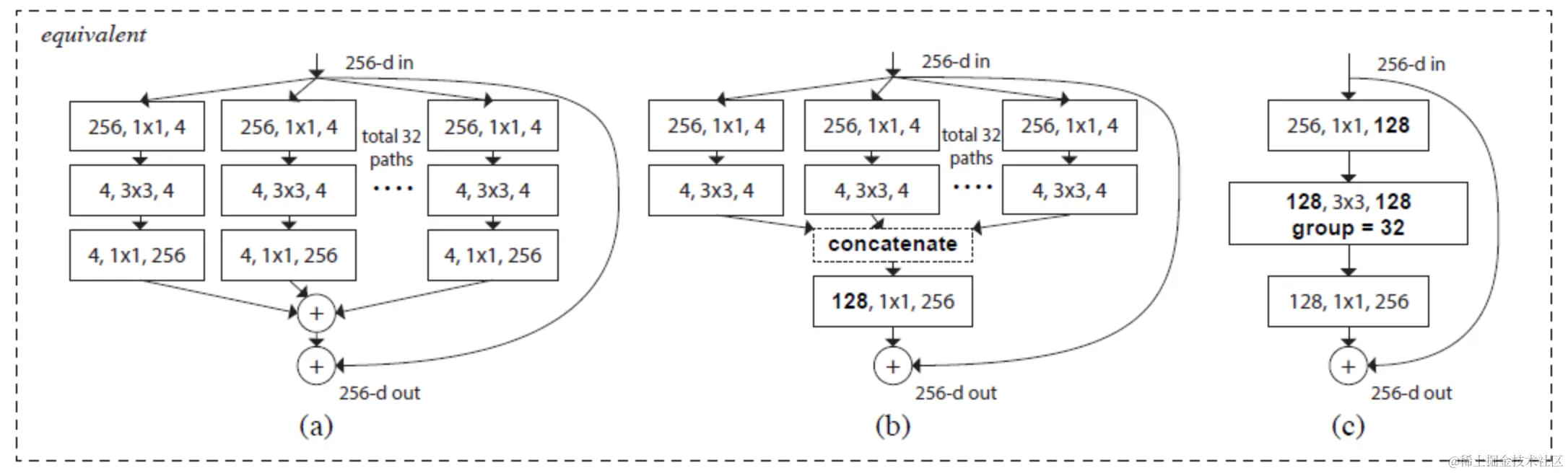 作者给出了上面三种block,它们在数学计算上完全等价。
