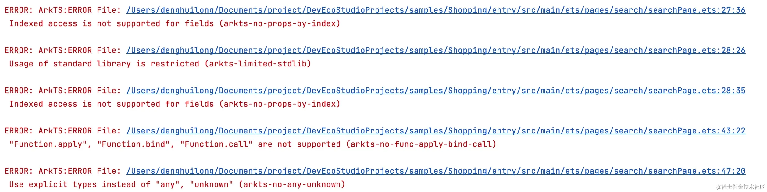 ArkTS 限制了 TypeScript 很多逆天语法,这篇主要介绍我在运行官方示例项目 Shopping 遇到的错误,熟悉这些后,再运行官方示例项目,不用在去网上找答案了,当然你在网上也很难找到这些错误的解决方案。