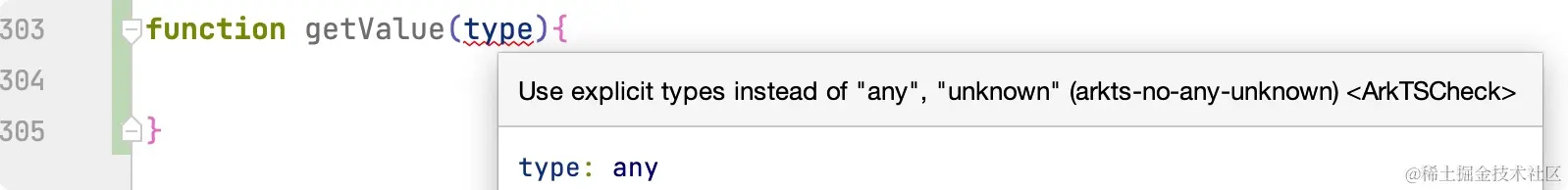 因为在 ArkTS 中不支持 any 或 unknown,所以这里应应省略类型标注。因此在 ArkTS 中代码如下所示。
