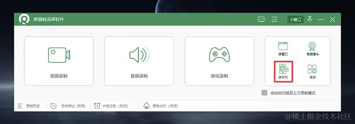 第一步:下载适用于自己电脑系统的数据蛙录屏软件,并根据提示进行安装,安装完成后打开软件,选择右侧的 “录手机” 功能。