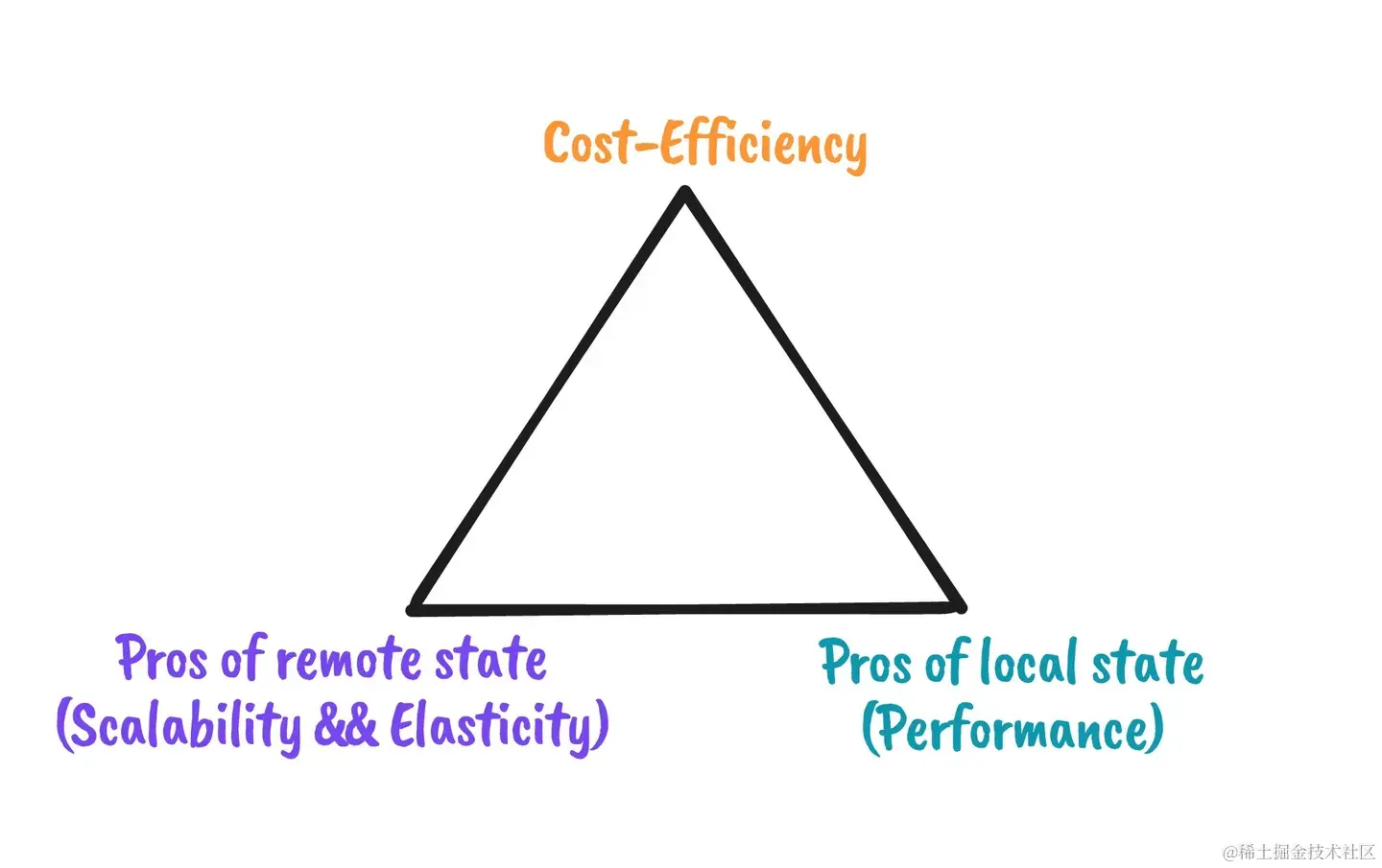 由于大部分状态在 remote state 中,RisingWave 可以很简单地实现 scale-out,然而带来的代价也是很明显的。相比于 Flink 这种 local state 的设计,RisingWave 需要多很多 remote lookup。