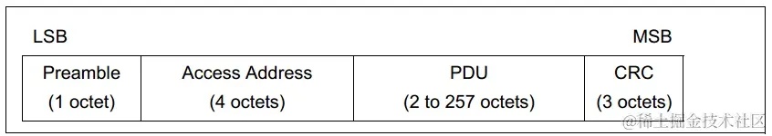 preamble(前导帧)为1个字节,根据Access Address第一个Bit,有两种取值情况:0x55或者0xAA