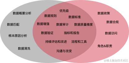 实际上,数据质量和数据治理之间存在相当多的重叠,如下图所示: