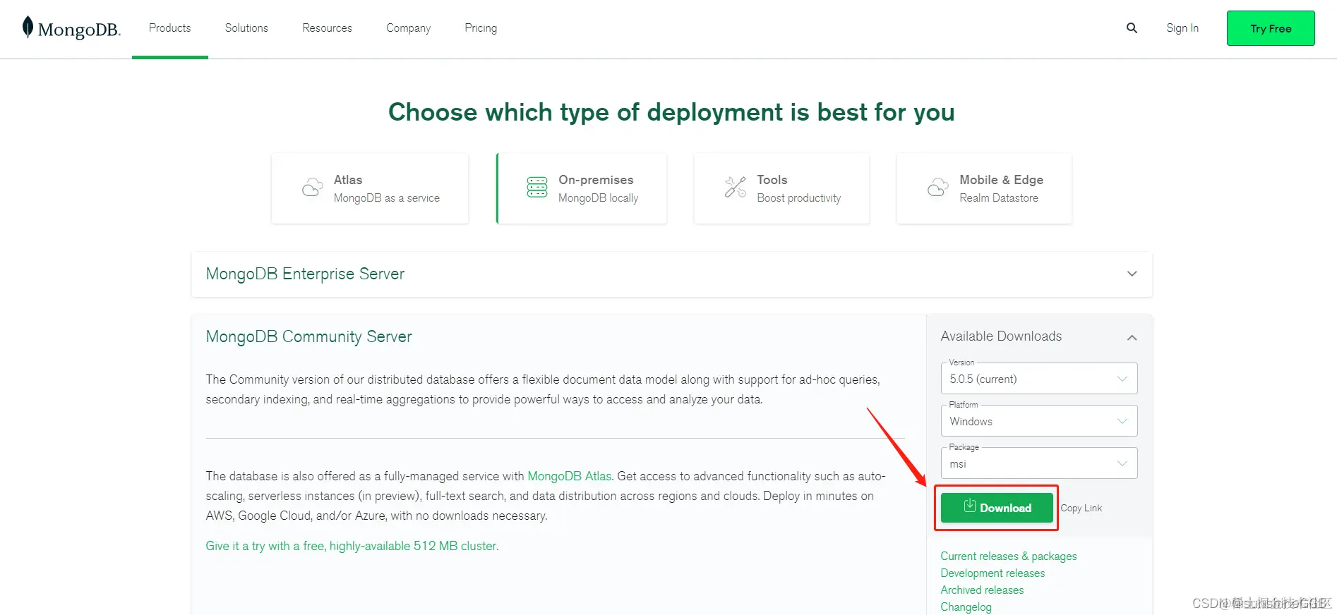 MongoDB 预编译二进制包下载地址:www.mongodb.com/try/downloa…