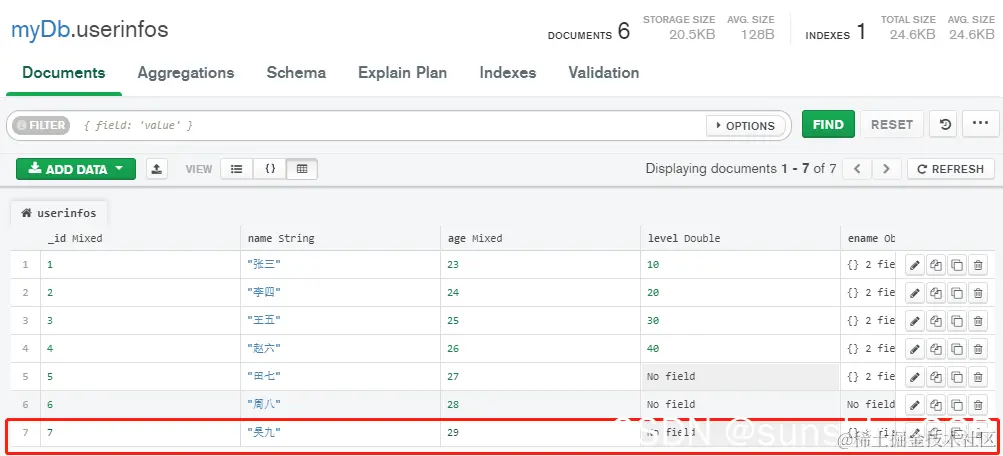 添加完成,MongoDB Compass中可看到已添加的数据