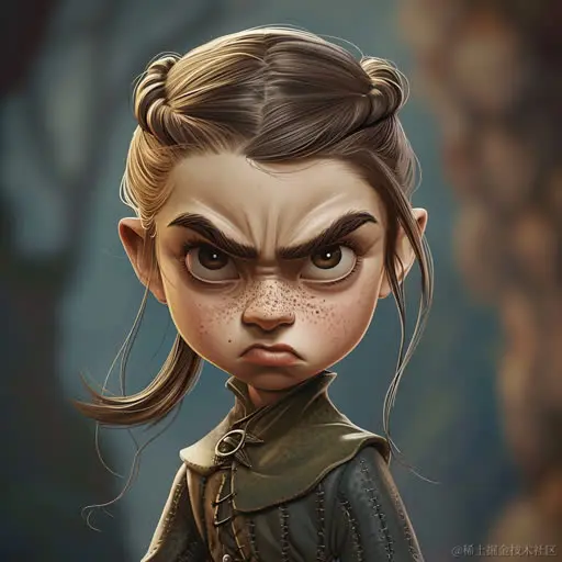 game of throne Arya Stark, in the style of caricature faces, gothcore, realistic, emotive portraits, 8k, high detailed, cartoony, 2d game art
