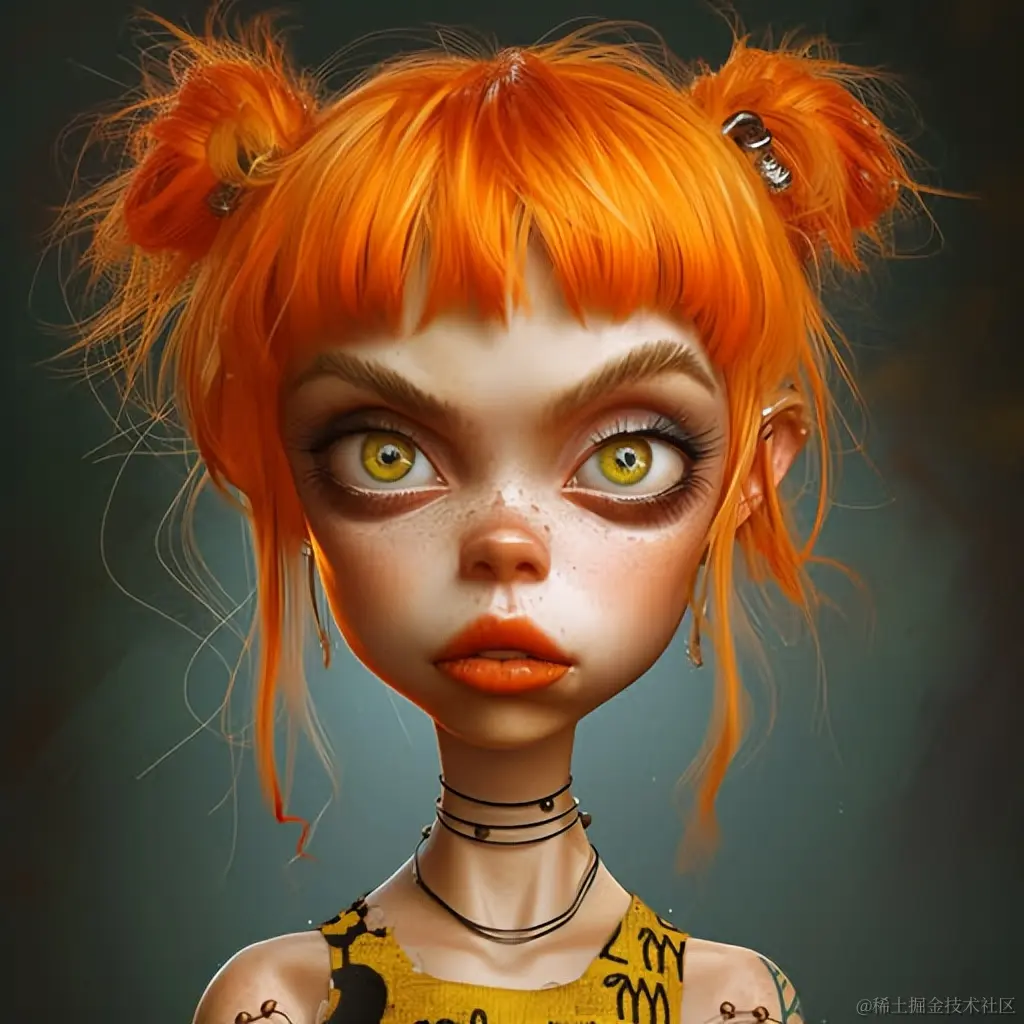 Leeloo的卡通画家,采用标志性的流行文化参考风格,严肃的现实主义,Magali Villeneuve,扭曲的形式,Tim Burton,名人和流行文化参考,超高清图像。