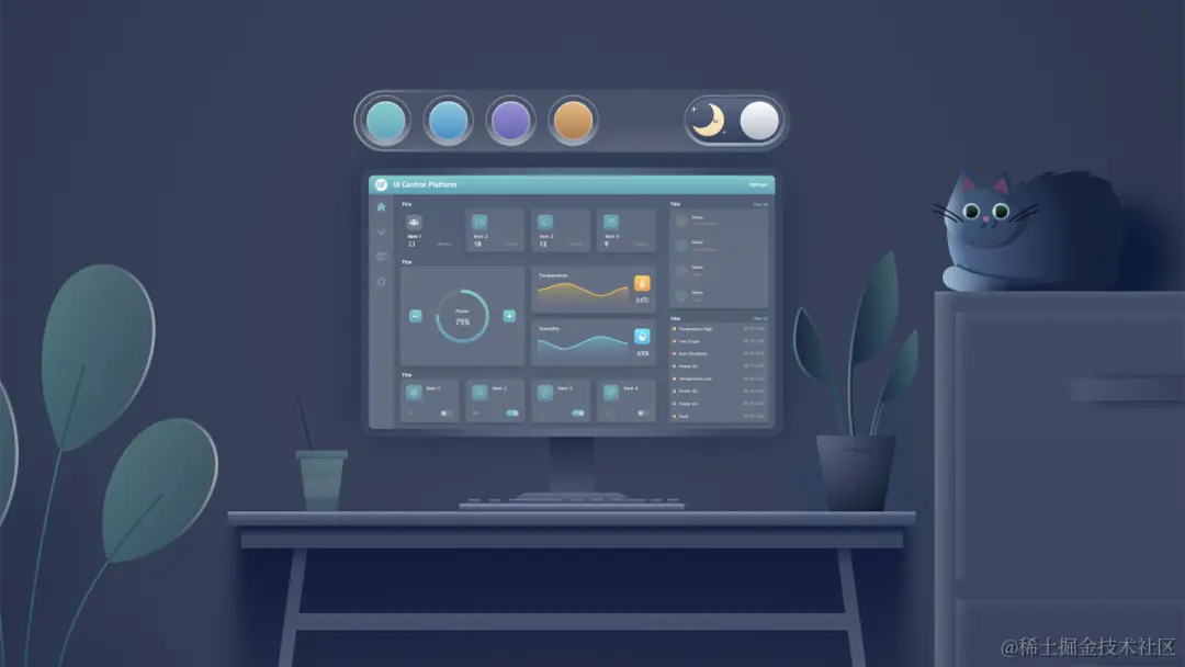 图扑 HT UI 5.0 引入了主题切换功能,为用户提供了深色/亮色两种不同的色彩模式,以及主题色切换功能,使用户能够根据个人偏好或系统要求自由选择。