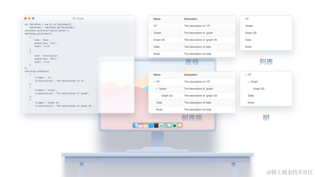 图扑 HT UI 5.0 沿用了 4.0 版本的特性,即统一的数据模型(DataModel),为用户提供了一种统一的数据驱动方式。这一设计理念使得树形、表格、列表等多种组件可以共享同一套数据模型,从而显著降低了开发人员的学习成本,简化了开发流程。