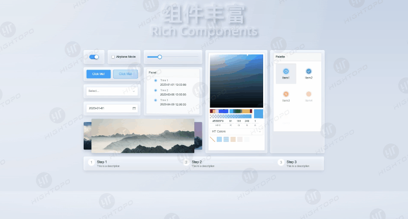 通过优化绘制机制,HT UI 5.0 能够更加智能地处理图形渲染,使得在处理大数据量或者需要频繁交互的情况下,仍能保持高效运行。这种高性能的设计不仅仅体现在组件的显示上,更包括用户与界面的互动过程中,确保了即便是在复杂的应用场景下,用户也能够感受到毫不迟滞的界面响应速度。