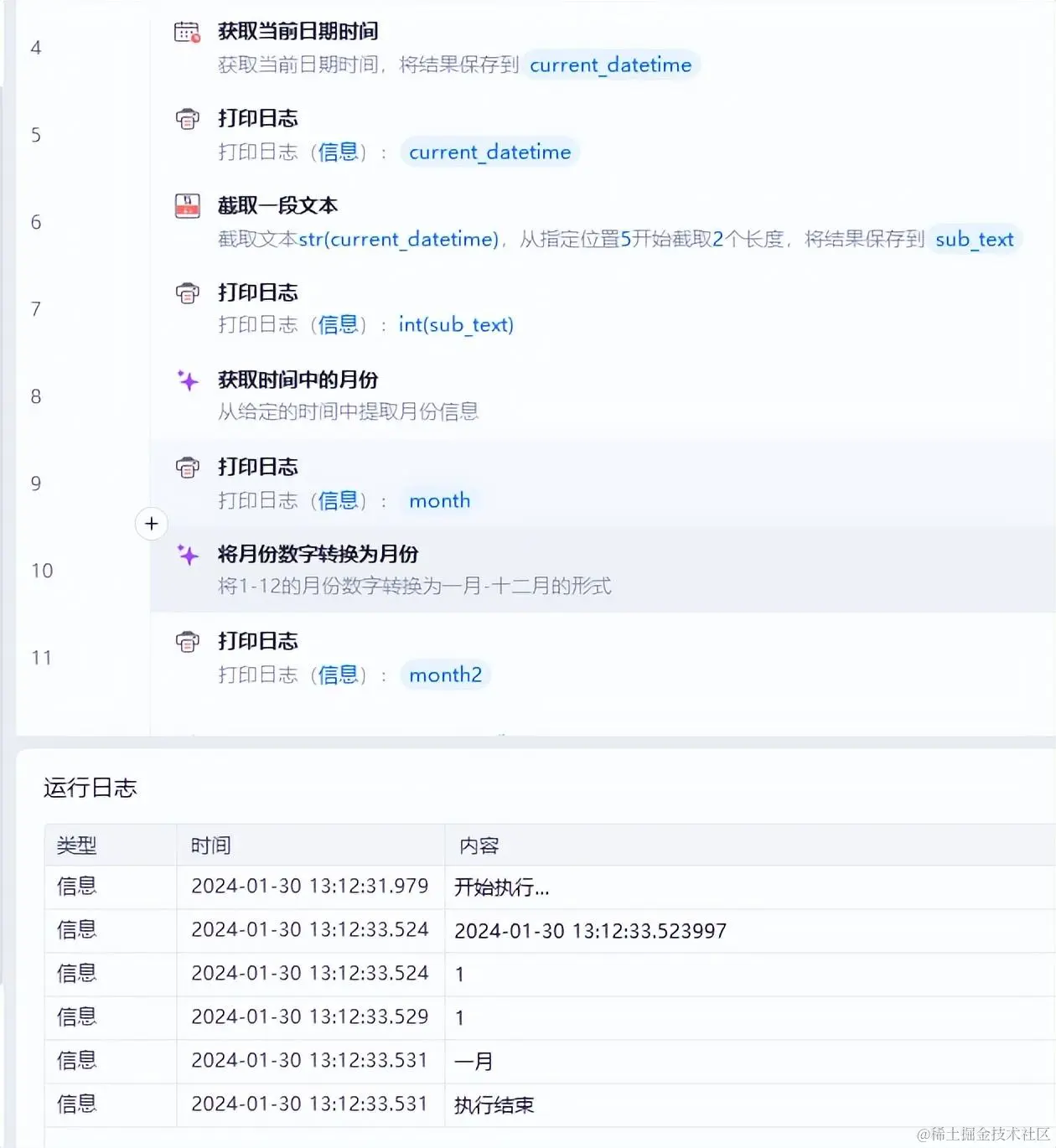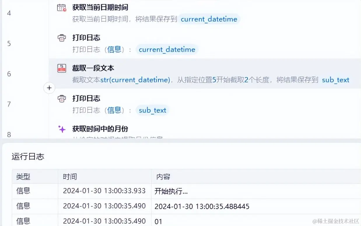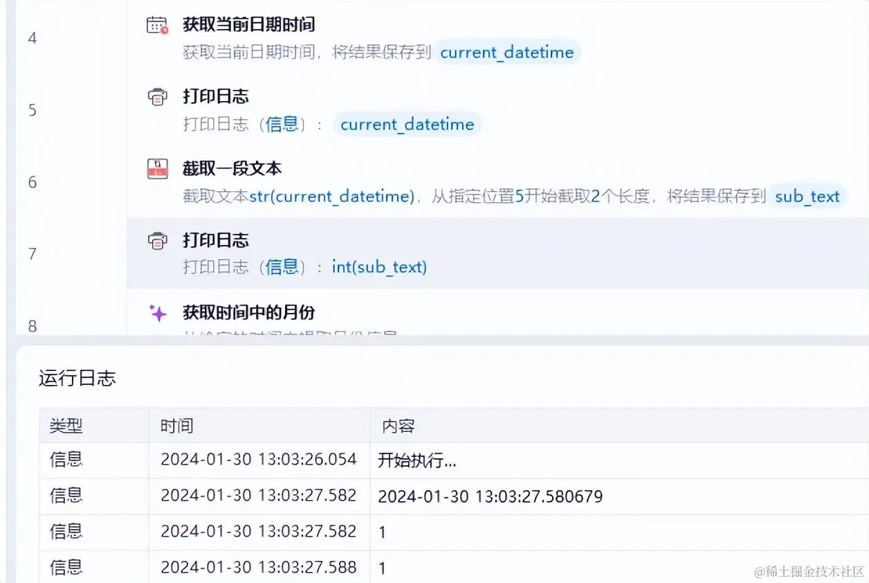 还需要根据当前时间获取时间中的月份,搜索了下,影刀rpa没有相关的指令可以直接获取月份,当然也可以通过截取的方式获取月份: