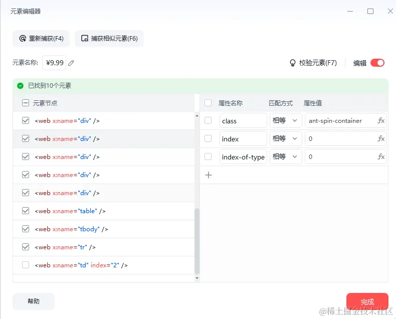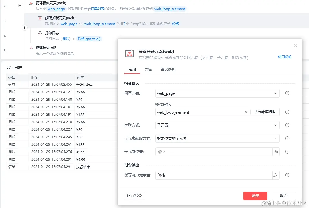 还有另一种方法获取订单明细的价格,不通过获取关联元素的指令,而是使用获取元素对象的方式,就我个人而言这种方式不是很好理解,还是第一种方式比较好理解,就好像python中的for循环。