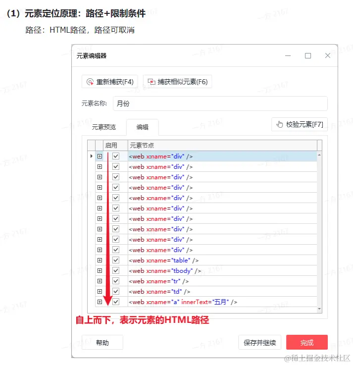 教程有说到元素的关联操作,教程说自上而下的html路径,一时之间没弄清楚,索性就去看了下网页的html源码,才弄清楚到底是咋回事: