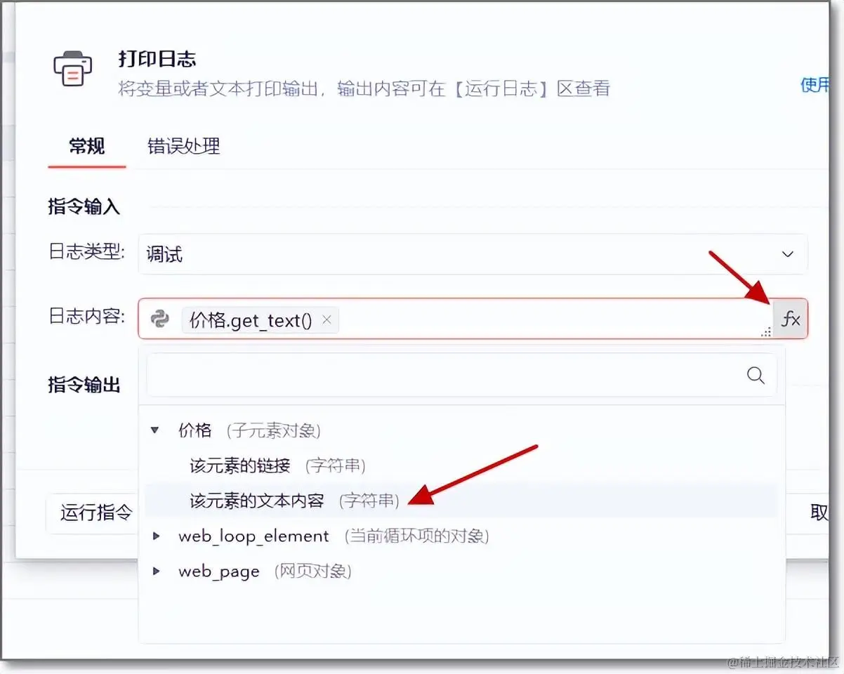 我们调试输出一下这个价格,有几个参数需要特别注意一下,就是关联方式选择子元素、子元素获取方式选择指定位置的子元素、子元素位置这里使用的是索引,价格在tr标签中的位置是3个,且索引从0开始,所以这里得子元素位置填2,如果是日期的话,则子元素位置填3: