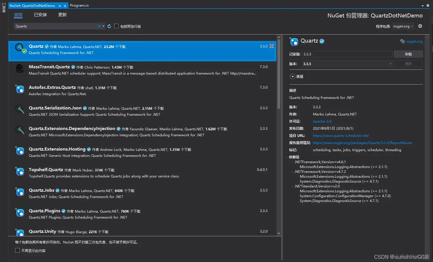 2、Nuget安装Quartz
