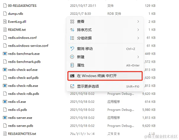 在Windows终端(可直接在解压文件夹右键选择[在Windows终端打开])。